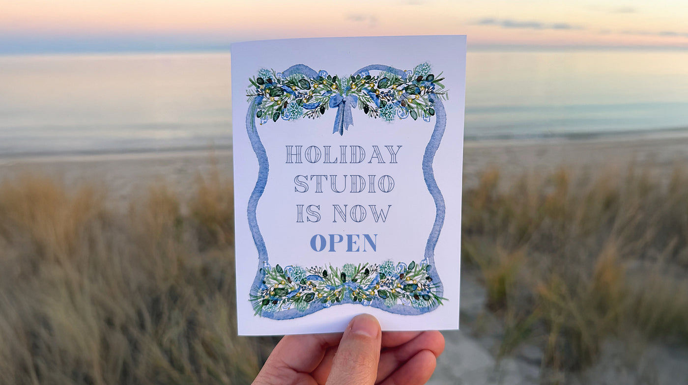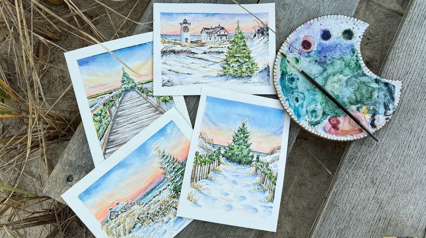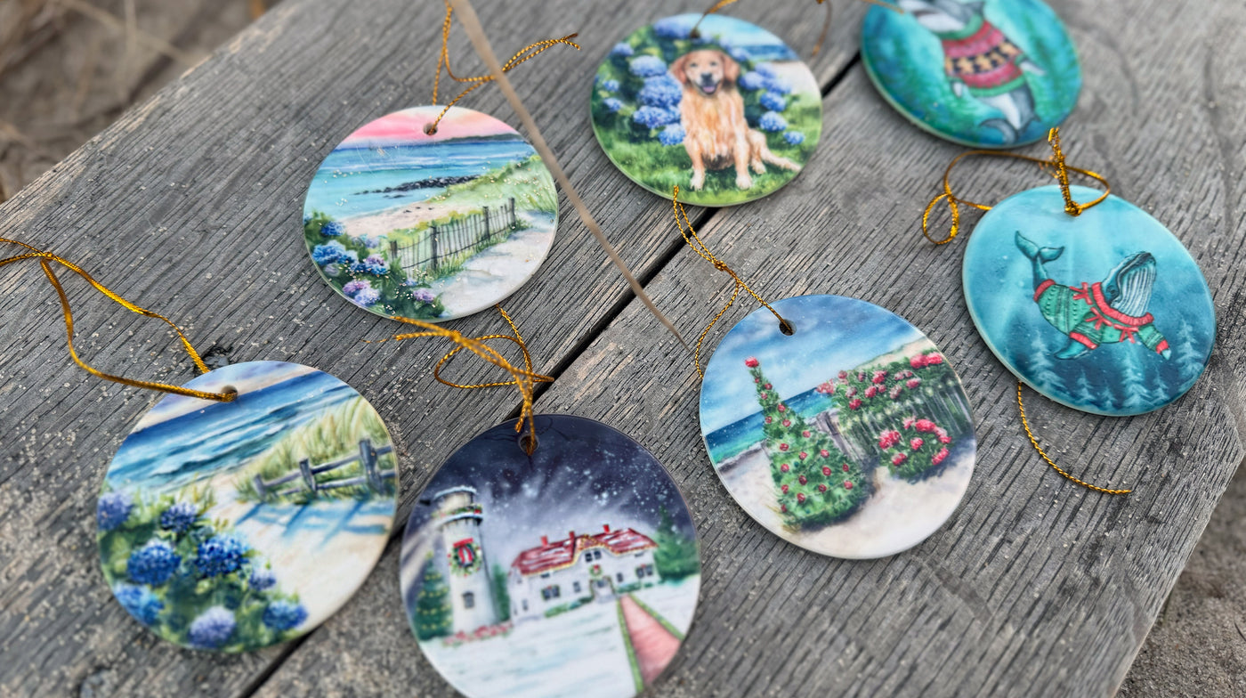 Coastal Christmas magic awaits in the Holiday Studio! Christmas cards, hydrangea art, ornaments, and hand-painted gifts inspired by Cape Cod’s cozy winter charm. Check back for specials and new additions to the studio through December!